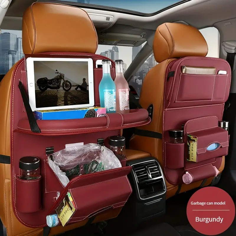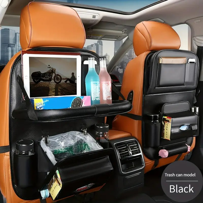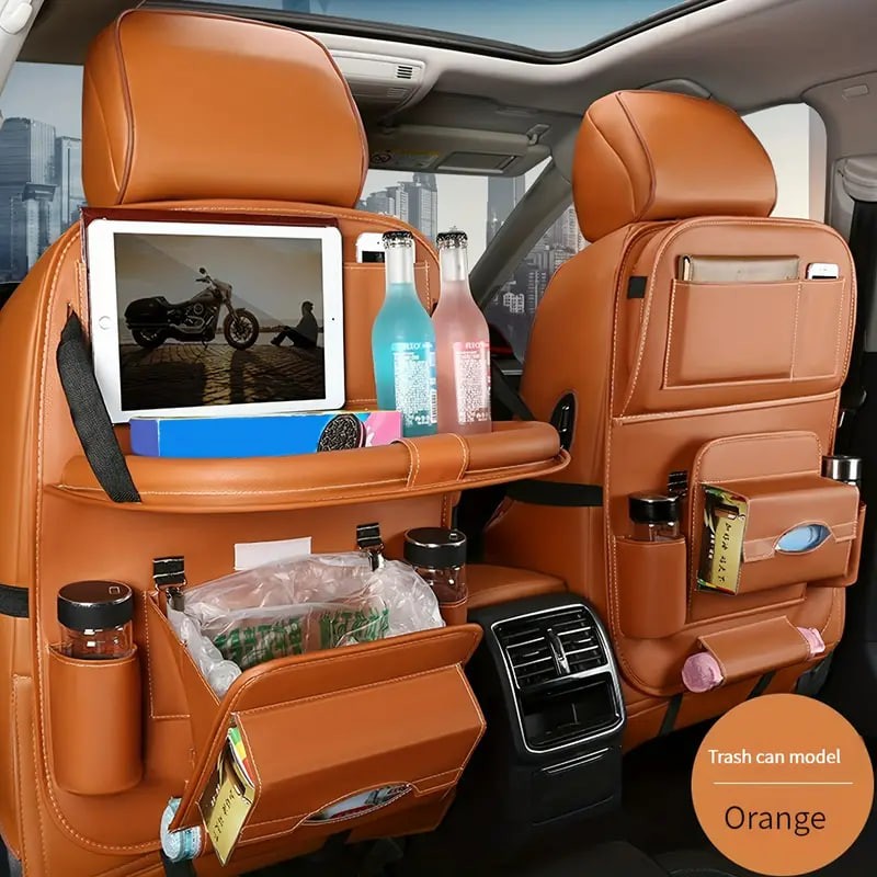 1pc Car Seat Back Faux Leather Luxury Storage Bag With Dining Tray Tissue Box Garbage Bag Hanging Bag Rear Seat Back Storage Bag