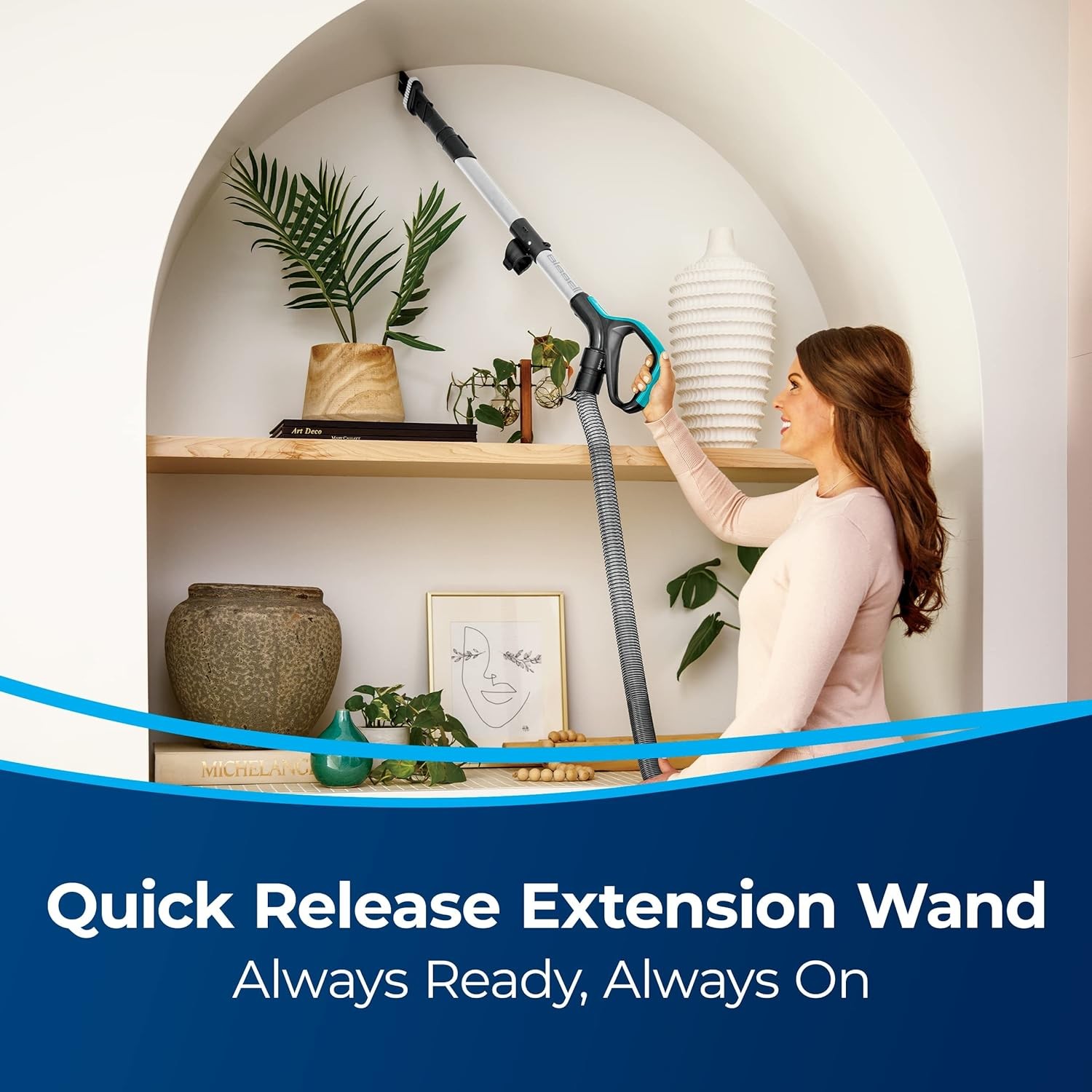 • Quick Release Extension Wand. Always on so it's always ready to clean, giving you convenient above floor cleaning.