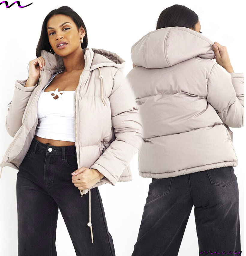 NEW WOMENS LADIES SHORT QUILTED WINTER COAT PUFFER HOODED JACKET PARKA SIZE