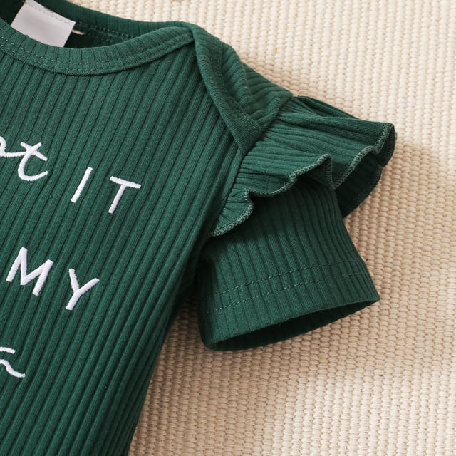 Dress your little princess in our 3pcs Baby Girl Set, featuring a cotton ribbed ruffle short-sleeve romper with cute letter embroidery, floral print layered shorts, and a matching headband. Made with 95% soft cotton, this set is gentle on your baby's skin. The romper's ruffle sleeves add a touch of elegance, while the floral shorts bring in a splash of color and style. The set is complete with a sweet headband, perfect for keeping hair in place and adding to her cuteness. Easy to wear and wash, it's ideal for daily fun or special occasions. This adorable set combines comfort, style, and practicality, making it a must-have for your baby girl's wardrobe.
