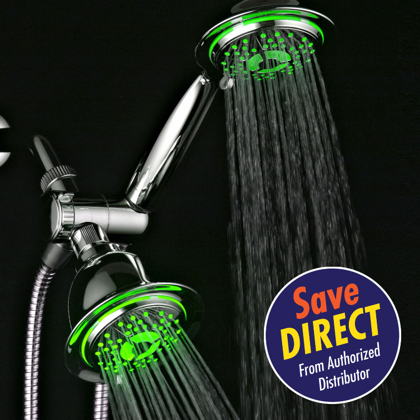 • Both shower heads feature Hydro Supercharged Turbine LED, Air Jet design that maximizes your water pressure output performance by injecting oxygen into water flow through 48 elastic rub-clean nozzles that help prevent clogging
