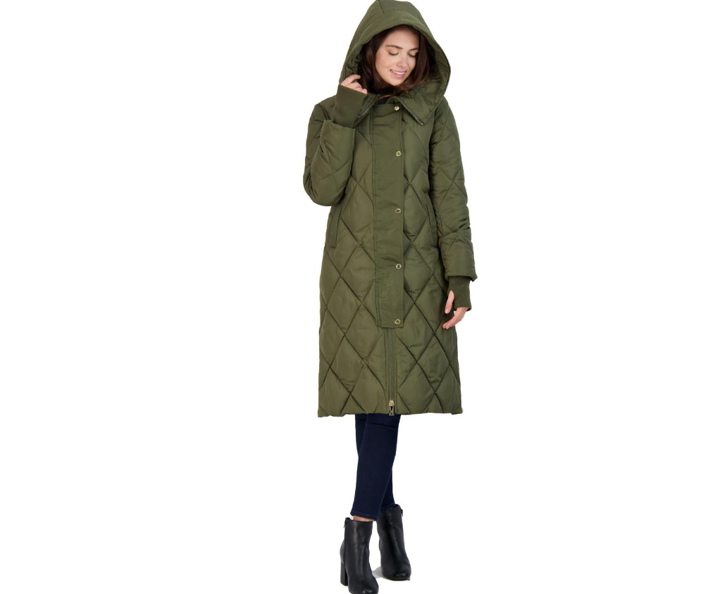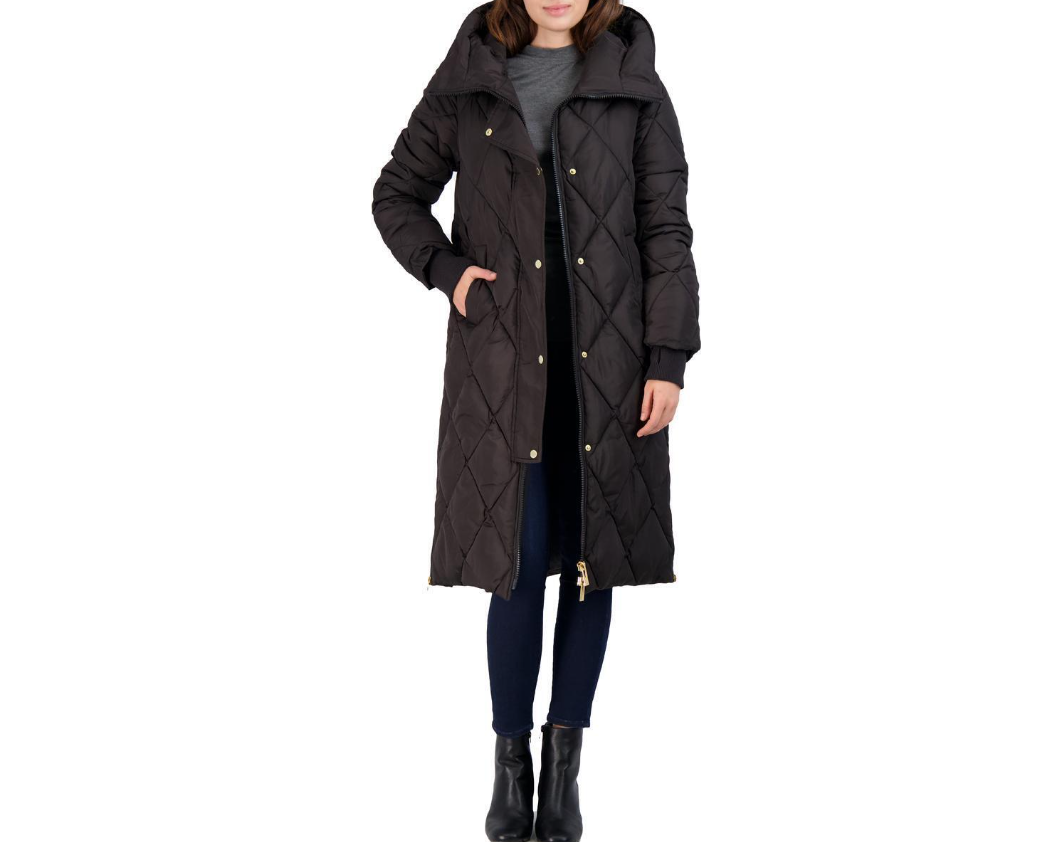 Via Spiga Women's Diamond Quilted Long Hooded Winter Puffer Coat